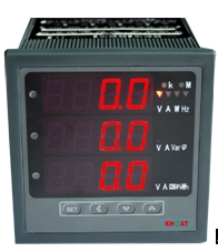 KHMPM/S電力儀表采用大規(guī)模集成電路進(jìn)行模擬/數(shù)字轉(zhuǎn)換,實(shí)現(xiàn)模擬量的數(shù)字化顯示。具有測(cè)量準(zhǔn)度高,可靠性好,直觀、抗干擾能力強(qiáng)的特點(diǎn)。能高精度地測(cè)量三相電壓、三相電流、有功功率、無功功率、視在功率、頻率、功率因數(shù)、有功電能等電力參數(shù)。具有很強(qiáng)的擴(kuò)展輔助功能,如用于監(jiān)視開關(guān)狀態(tài)的四路開關(guān)量輸入、控制開關(guān)動(dòng)作的四路繼電器報(bào)警輸出、也可用于開關(guān)量輸出控制、兩路4-20mA模擬量變送輸出以及一個(gè)RS485通訊接口。儀表面板提供四個(gè)編程按鍵,用戶可現(xiàn)場(chǎng)方便地實(shí)現(xiàn)顯示切換、儀表參數(shù)編程設(shè)置。多功能電力儀表廣泛用于電站、電氣開關(guān)柜等各行業(yè)供配電場(chǎng)所、能源管理、自動(dòng)化以及智能化網(wǎng)絡(luò)監(jiān)控系統(tǒng)等。