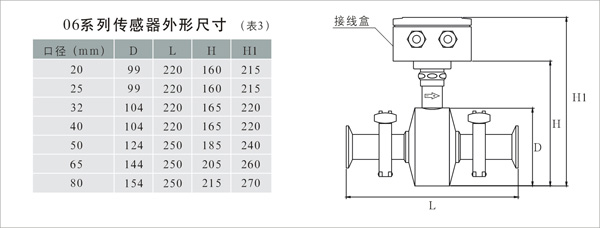 06衛(wèi)生型傳感器專(zhuān)為食品、醫(yī)藥等用戶設(shè)計(jì),其工藝過(guò)程經(jīng)常需要定期清洗消毒,為拆卸方便一般采用卡箍接頭與被測(cè)管道連接的形式。