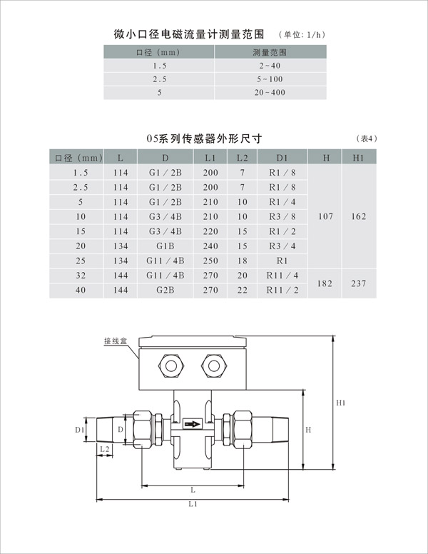傳統(tǒng)電磁流量計(jì)由于受加工工藝及制造成本的限制,無(wú)法滿足用戶對(duì)微小流量的測(cè)量,05型微小口徑電磁流量計(jì)能測(cè)量低至每小時(shí)2升的極低流量。