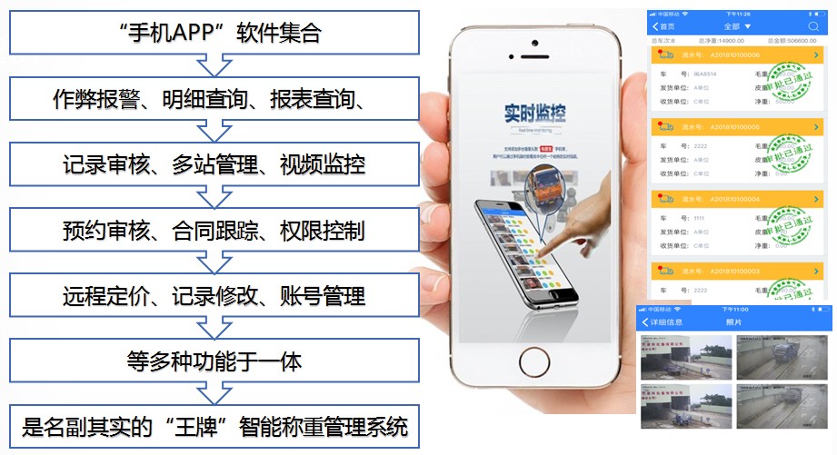 手機(jī)聯(lián)網(wǎng)版軟件是衡器物聯(lián)網(wǎng)的管理中心,可以對(duì)多臺(tái)稱(chēng)重設(shè)備的數(shù)據(jù)進(jìn)行集中管理,用戶(hù)可以在此平臺(tái)上查詢(xún)、統(tǒng)計(jì)、打印和導(dǎo)出相關(guān)數(shù)據(jù),如稱(chēng)重記錄、報(bào)表、來(lái)往賬目和圖片等信息,也可以在APP 上查看現(xiàn)場(chǎng)實(shí)時(shí)視頻監(jiān)控和接收遙控報(bào)警提醒,并能進(jìn)行遠(yuǎn)程定價(jià)、遠(yuǎn)程充值、遠(yuǎn)程扣重和交易確認(rèn)等操作。