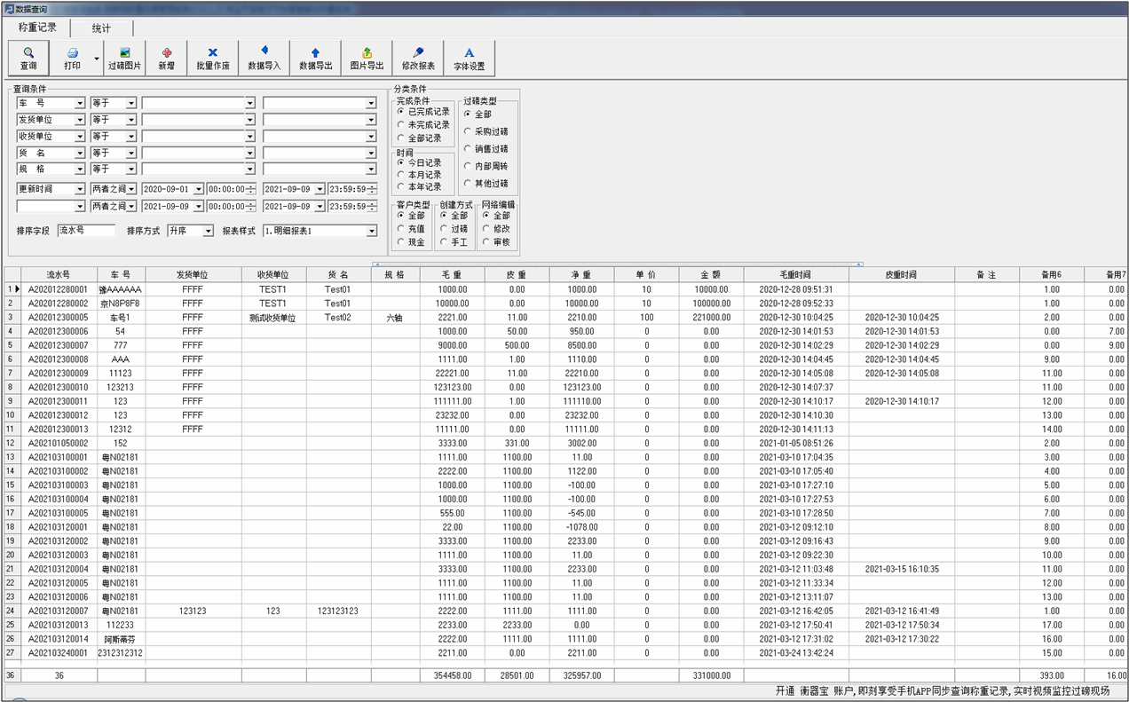 稱(chēng)重記錄在線查詢(xún)、數(shù)據(jù)導(dǎo)出